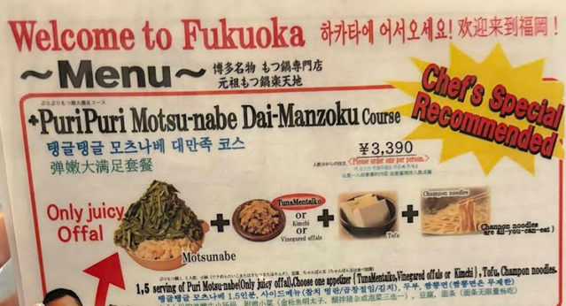 지난 여행에서 못먹었던 또 다른 음식인 모츠나베를 먹었다.